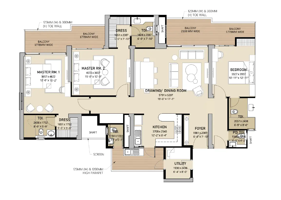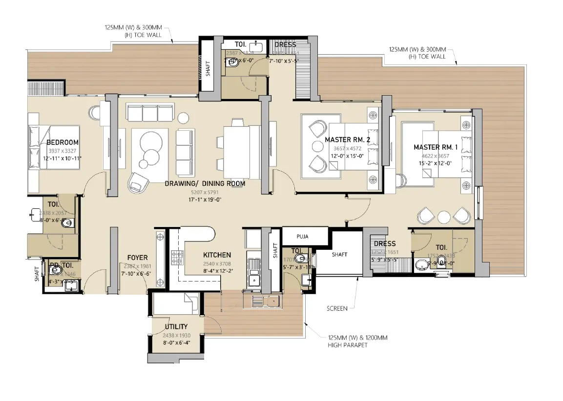 Whether it’s the 3 BHK or 4 BHK layouts, every apartment ensures optimum privacy, corner positioning, and premium room dimensions.